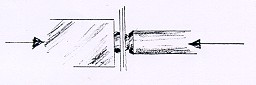 2. Conjunto com a arma no lugar, use bucking bar para empurrar rebite (arma e montagem) para fora. Bucking bar, ent?o, registrar em angulos retos com o rebite como se trata de repousar sobre o alumínio.