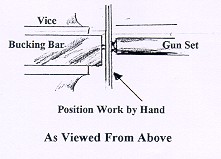 O bar bucking pode ser fixado em uma morsa e, com os componentes colocados à m?o, rebites s?o definidos com uma arma na m?o de outros. A principal vantagem aqui é que o bar está parado e os componentes podem ser mais facilmente realizada e posicionados para rebitar.