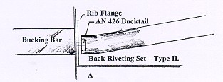 Voltar rebitagem é um método de fixa??o rebites , geralmente em um componente de Pelé, golpeando as caudas buck com uma arma especial definido enquanto a cabe?a está bem nivelado apoiada no seu coletor de ondula??o ou contador por uma chapa de a?o ou bucking bar.